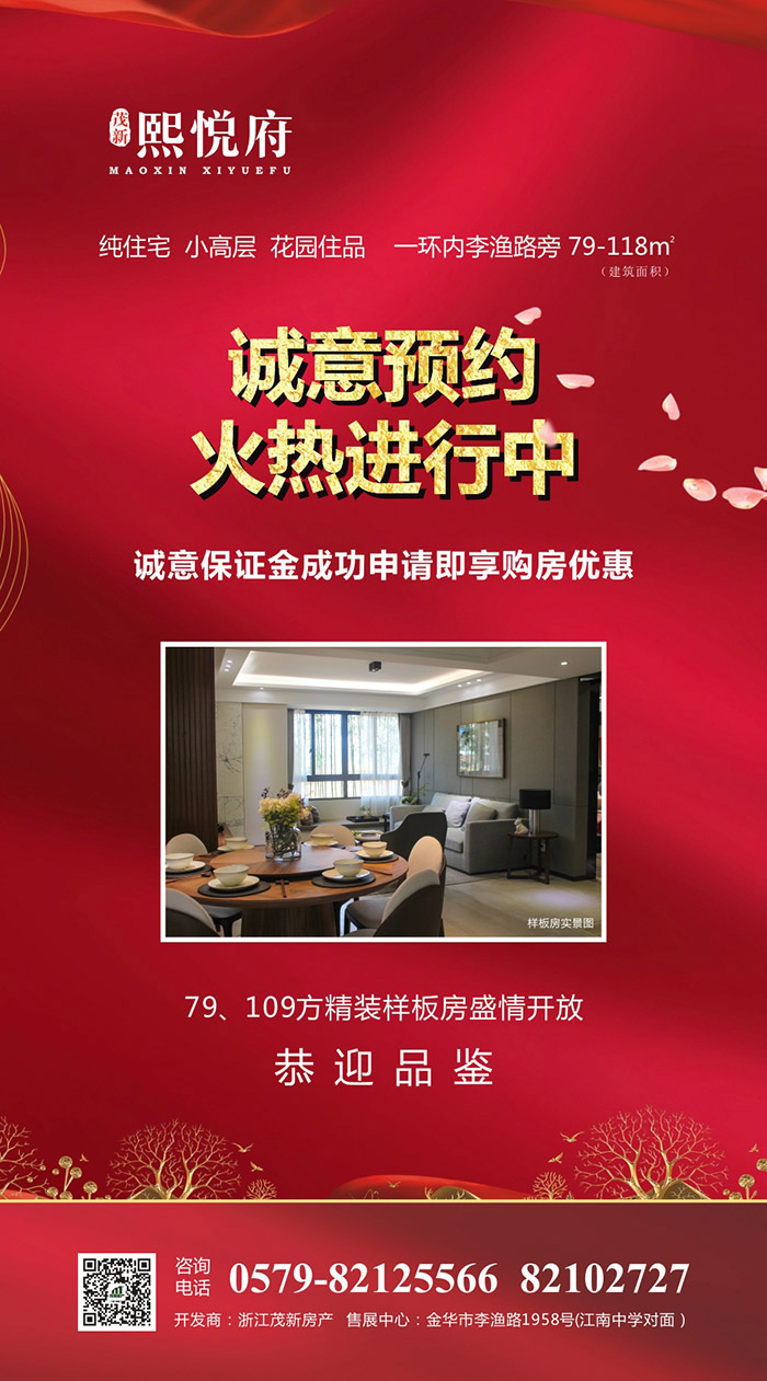 5、領(lǐng)票地點(diǎn):茂新·熙悅府售展中心,金華市李漁路1958號(江南中學(xué)對面)